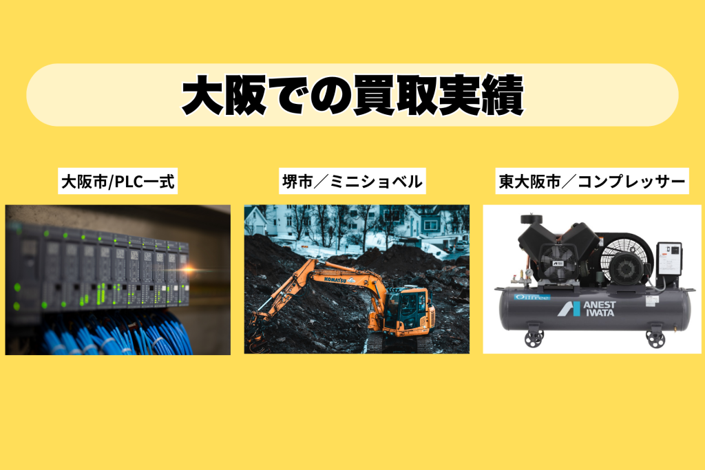 大阪府内で機械を高く売るなら、大阪狭山市拠点のECOLO JAPANにお任せください。FA機器、建設機械、発電機、コンプレッサー、中古工具まで幅広く高価買取します。出張・査定・キャンセルは全て無料、即日現金化も可能です。